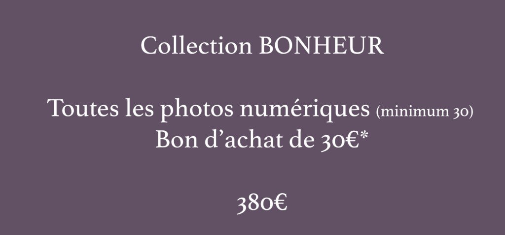 Je propose donc bien entendu des tirages et autres produits après la séance, de qualité professionnelle afin d’en garder le meilleur souvenir.